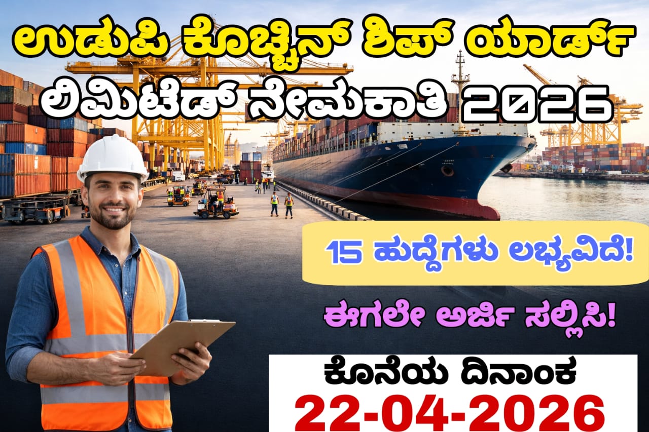 ನಮಸ್ಕಾರ ಸ್ನೇಹಿತರೇ, ನೀವು ಉತ್ತಮ ವೇತನದ ಸರ್ಕಾರಿ ಉದ್ಯೋಗಕ್ಕಾಗಿ ನಿರೀಕ್ಷಿಸುತ್ತಿದ್ದೀರಾ? ಅದೂ ನಮ್ಮ ಕರಾವಳಿ ಪ್ರದೇಶವಾದ ಉಡುಪಿಯಲ್ಲಿ ಕೆಲಸ ಮಾಡುವ ಒಳ್ಳೆಯ ಅವಕಾಶ ನಿಮಗಾಗಿ ಸಿದ್ಧವಾಗಿದೆ. ಹೌದು, ಉಡುಪಿ ಕೊಚ್ಚಿನ್ ಶಿಪ್ಯಾರ್ಡ್ ಲಿಮಿಟೆಡ್ (UCSL) ವಿವಿಧ ಸೂಪರ್ವೈಸರ್ (Supervisor) ಹುದ್ದೆಗಳ ನೇಮಕಾತಿಗಾಗಿ ಅಧಿಕೃತ ಪ್ರಕಟಣೆ ಬಿಡುಗಡೆ ಮಾಡಿದೆ. ಹುದ್ದೆಯ ಮಾಹಿತಿ: ಸಂಸ್ಥೆಯ ಹೆಸರು: ಉಡುಪಿ ಕೊಚ್ಚಿನ್ ಶಿಪ್ಯಾರ್ಡ್ ಲಿಮಿಟೆಡ್ ಹುದ್ದೆಯ ಹೆಸರು: ಸೂಪರ್ವೈಸರ್ (Supervisor) ಖಾಲಿ ಹುದ್ದೆಗಳ ಸಂಖ್ಯೆ: 15 ಕೆಲಸದ ಸ್ಥಳ: ಉಡುಪಿ, ಕರ್ನಾಟಕ ವಿದ್ಯಾರ್ಹತೆ: • ಯಾವುದೇ ಮಾನ್ಯತೆ ಪಡೆದ ಮಂಡಳಿ ಅಥವಾ ವಿಶ್ವವಿದ್ಯಾಲಯದಿಂದ ಐಟಿಐ, ಮೆಕ್ಯಾನಿಕಲ್ / ಎಲೆಕ್ಟ್ರಿಕಲ್ ಅಥವಾ ಎಲೆಕ್ಟ್ರಾನಿಕ್ಸ್ ಎಂಜಿನಿಯರಿಂಗ್ನಲ್ಲಿ ಡಿಪ್ಲೊಮಾ, ಬಿ.ಕಾಂ, ಬಿಬಿಎಂ ಅಥವಾ ಬಿಬಿಎ ಪದವಿ ಪೂರ್ಣಗೊಳಿಸಿರುವ ಅಭ್ಯರ್ಥಿಗಳು ಅರ್ಜಿ ಸಲ್ಲಿಸಬಹುದು. ವಯೋಮಿತಿ: ಅಭ್ಯರ್ಥಿಗಳ ಗರಿಷ್ಠ ವಯೋಮಿತಿ 22-04-2026 ರಂದು 45 ವರ್ಷಗಳನ್ನು ಮೀರಿರಬಾರದು. ಮಾಸಿಕ ವೇತನ : ಮಾಸಿಕ ₹40,650 – 44,164/- ವೇತನ ನೀಡಲಾಗುತ್ತದೆ. ಅರ್ಜಿ ಶುಲ್ಕ: SC/ ST/ PWBD ಅಭ್ಯರ್ಥಿಗಳಿಗೆ: ಇಲ್ಲ ಇತರ ಎಲ್ಲಾ ಅಭ್ಯರ್ಥಿಗಳಿಗೆ: ₹300/- ಪಾವತಿ ವಿಧಾನ: ಆನ್ಲೈನ್ ಆಯ್ಕೆ ಪ್ರಕ್ರಿಯೆ: ಲಿಖಿತ ಪರೀಕ್ಷೆ. ಪವರ್ ಪಾಯಿಂಟ್ ಪ್ರಸ್ತುತಿಕೆ. ಸಂದರ್ಶನ ಅರ್ಜಿ ಸಲ್ಲಿಸುವುದು ಹೇಗೆ? ಮೊದಲು ಅಧಿಕೃತ ವೆಬ್ಸೈಟ್ https://udupicsl.com/� ಗೆ ಭೇಟಿ ನೀಡಿ. Recruitment’ ವಿಭಾಗದಲ್ಲಿ ‘Supervisor’ ಸಂಬಂಧಿಸಿದ ಅಧಿಸೂಚನೆಯನ್ನು ಗಮನದಿಂದ ಓದಿ. ಅಗತ್ಯವಿರುವ ಎಲ್ಲಾ ದಾಖಲೆಗಳೊಂದಿಗೆ ಆನ್ಲೈನ್ ಅರ್ಜಿಯನ್ನು ಭರ್ತಿ ಮಾಡಿ. ಅನ್ವಯಿಸುವ ಅಭ್ಯರ್ಥಿಗಳು ಅರ್ಜಿ ಶುಲ್ಕವನ್ನು ಪಾವತಿಸಿ, ನಂತರ ಫಾರ್ಮ್ ಅನ್ನು ಸಲ್ಲಿಸಿ. ಪ್ರಮುಖ ದಿನಾಂಕಗಳು : ಅರ್ಜಿ ಸಲ್ಲಿಸಲು ಪ್ರಾರಂಭದ ದಿನಾಂಕ: 02-04-2026 ಅರ್ಜಿ ಸಲ್ಲಿಸಲು ಕೊನೆಯ ದಿನಾಂಕ: 22-04-2026 ಅರ್ಜಿ ಶುಲ್ಕ ಪಾವತಿಸಲು ಕೊನೆಯ ದಿನಾಂಕ: 22-04-2026 Post navigation Shram Yogi Mandan ಯೋಜನೆ ಮೊಬೈಲ್ ನಲ್ಲೇ ಅರ್ಜಿ ಸಲ್ಲಿಸಿ ರೈಲ್ವೆ ನೇಮಕಾತಿ ಮಂಡಳಿ ನೇಮಕಾತಿ | RRB Recruitment 2026
